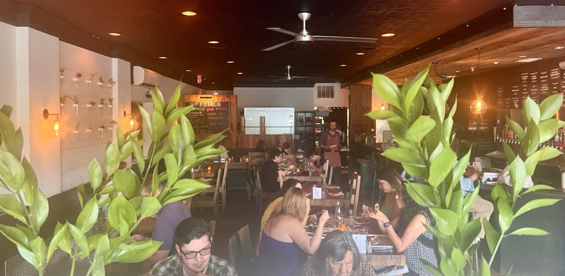 O gastropub fica em uma área residencial, a 10 minutos de Uber do centro de Austin.