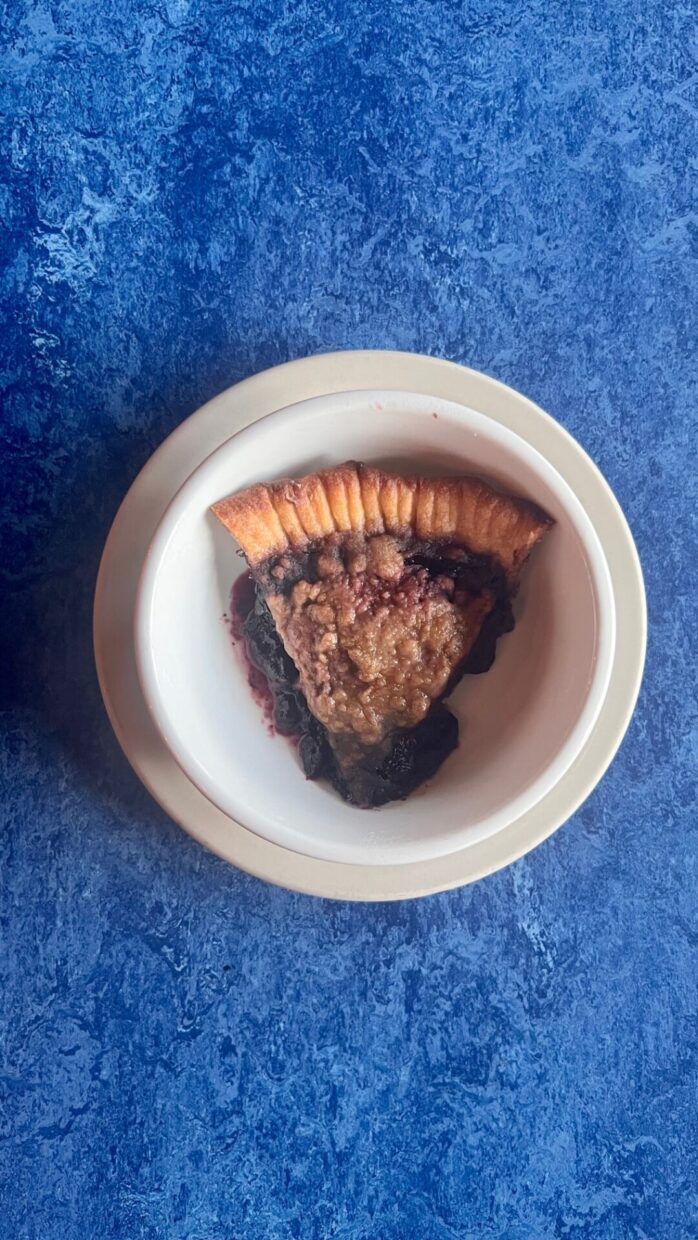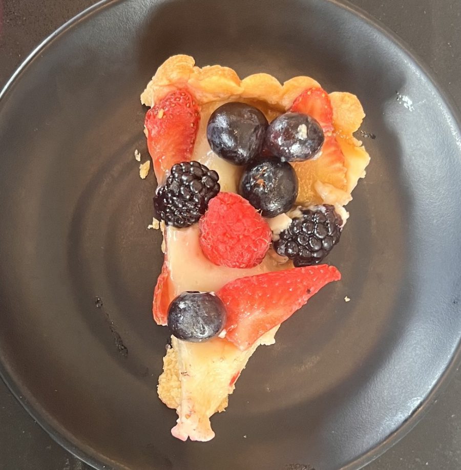Finalize com uma tortinha de blueberry, que chega quentinha na mesa.