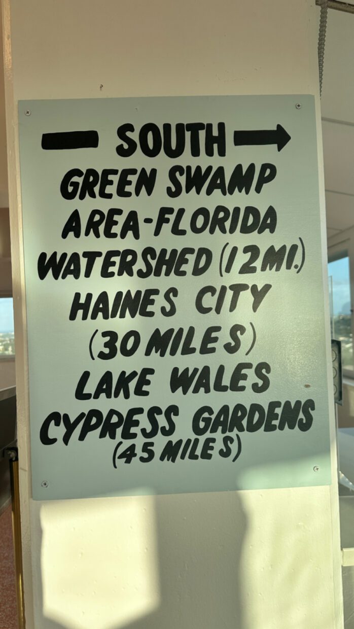 A vista do alto é incrível e se vê os lagos, mangues, o Cypress Gardens, um dos jardins mais lindos da Flórida, e até os fogos que acontecem na Disney.