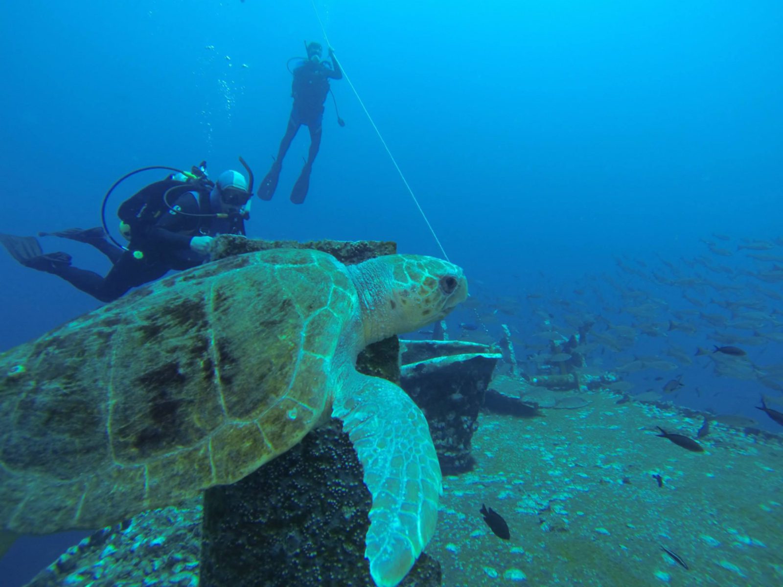 Mergulhe entre esculturas submersas enquanto testemunha a vibrante vida marinha, incluindo golfinhos, garoupas e tartarugas marinhas.