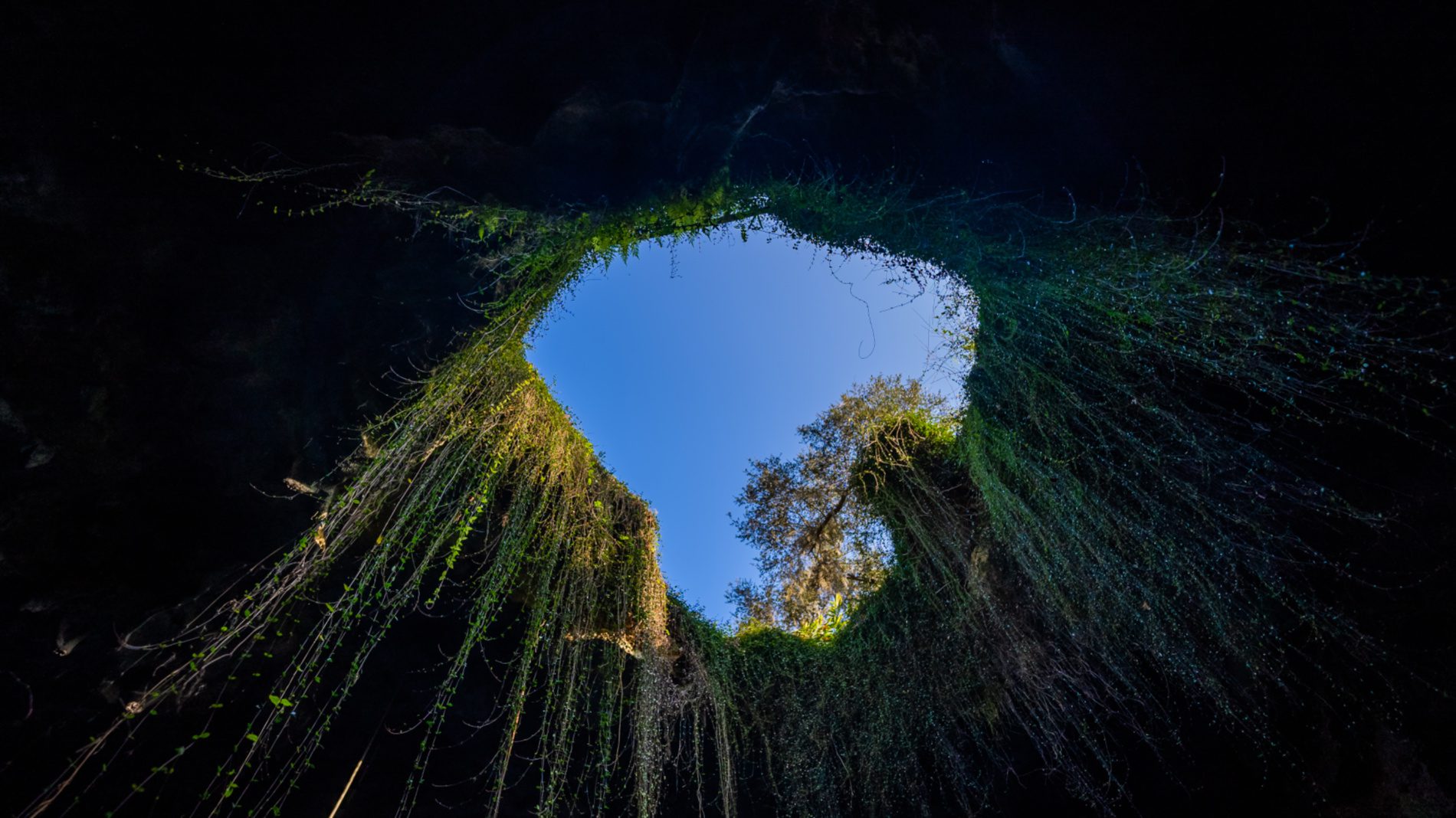 A caverna pré-histórica tem um diâmetro de 36,5 metros à superfície e uma nascente com uma profundidade máxima de 16,5 metros, com acesso exclusivo para mergulhadores e praticantes de snorkel.