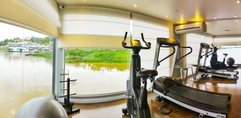 Hóspedes a bordo do Peralta Cruise têm vista panorâmica para o rio e para as margens do Rio Paraguai, bar no deck, piscina, academia e muitas outras comodidades.