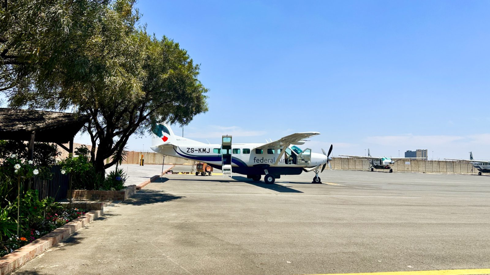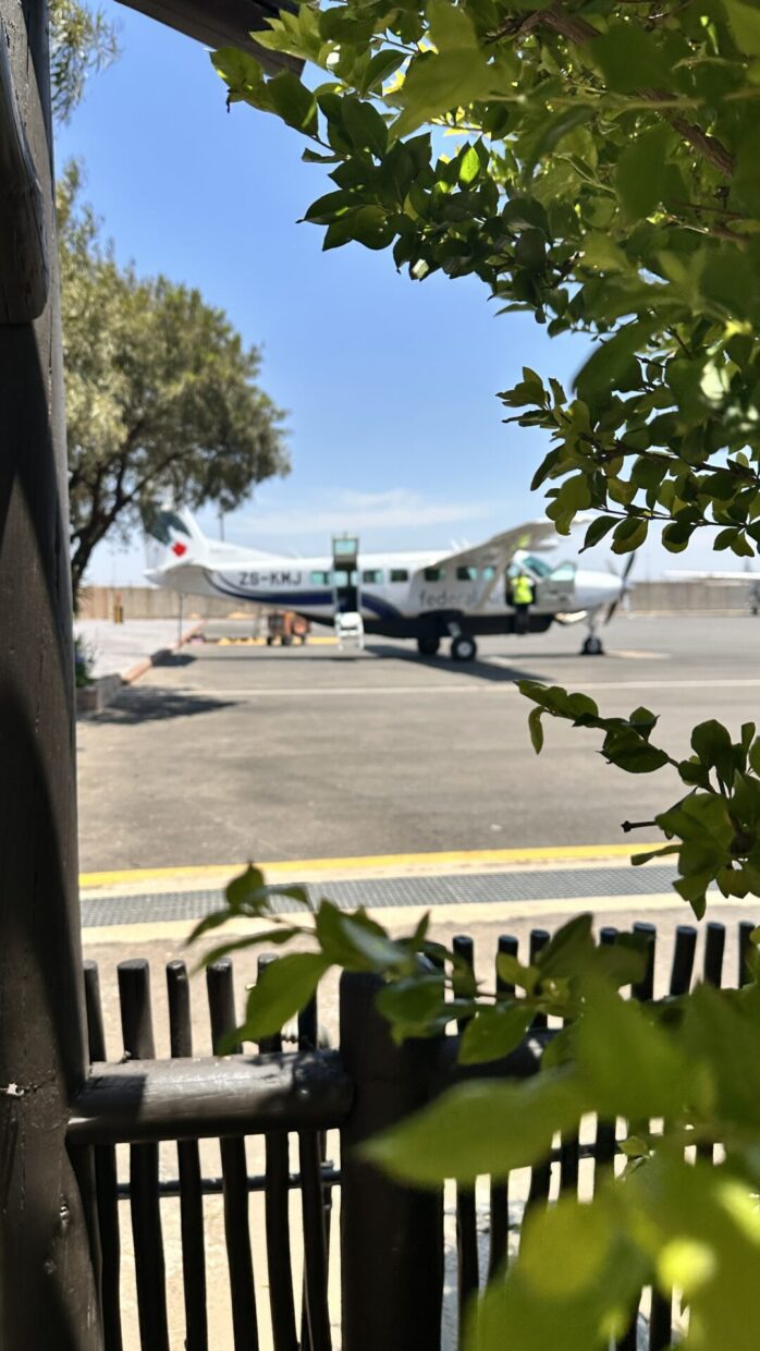 Fomos de aéreo. O pequeno avião da Federal Air parte de um aeroporto menor, adjunto do aeroporto Oliver Tambo, o principal, no qual chegamos.