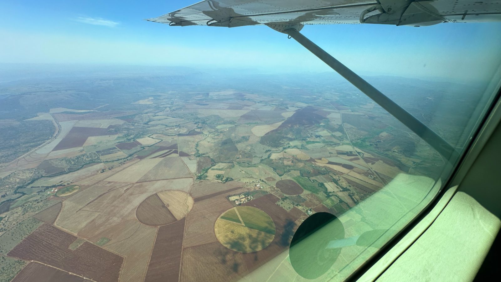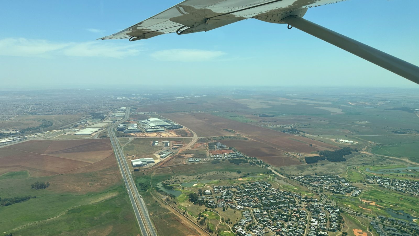Avião menor Federal Air que sai do terminal menor do Aeroporto Internacional Oliver Tambo, em JoanesbuImagem aérea na rota de Joanesburgo à reserva Sabi Sand, no avião pequeno Federal Air – foto Andrea Miramontes @ladobviagem