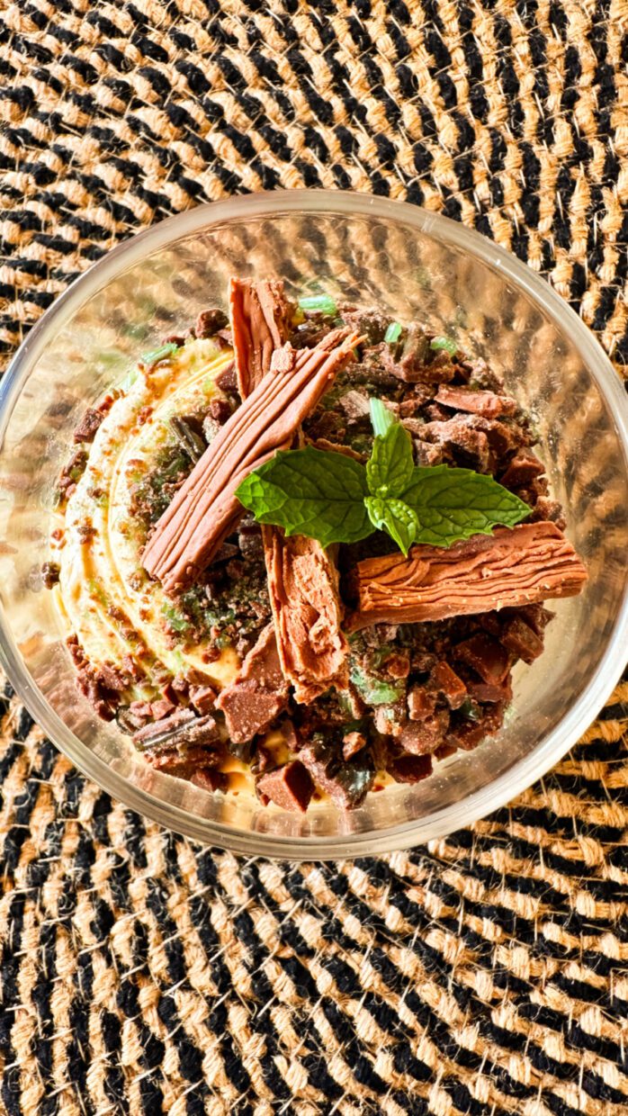 Na versão vegana, especialmente criada pelos chefs do Cheetah Plains, o leite foi trocado por leite de coco e ficou sensacional.