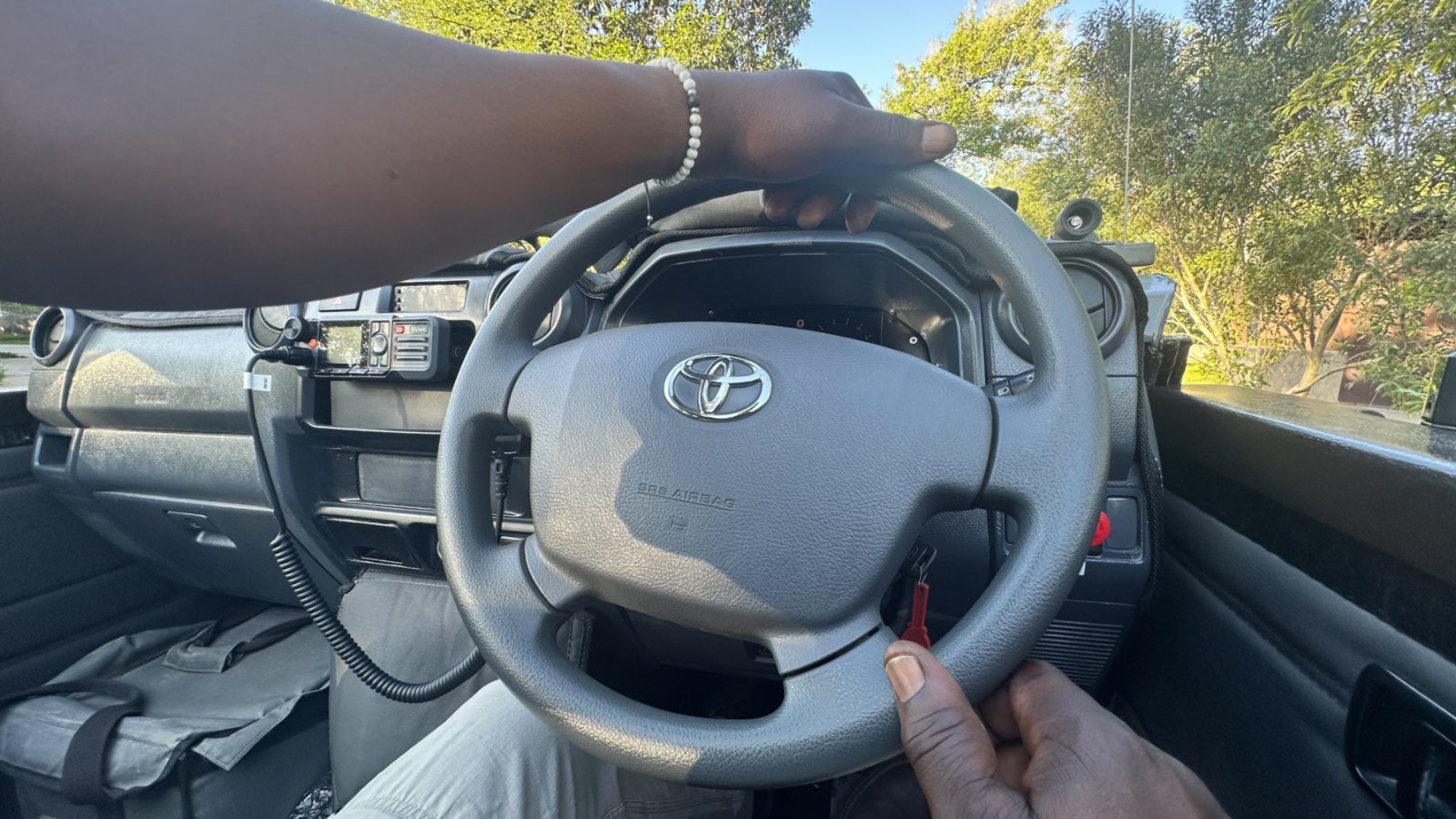 Carro do lodge espera na beira da pista, onde não há terminal, pois estamos no meio da savana – foto Andrea Miramontes @ladobviagem