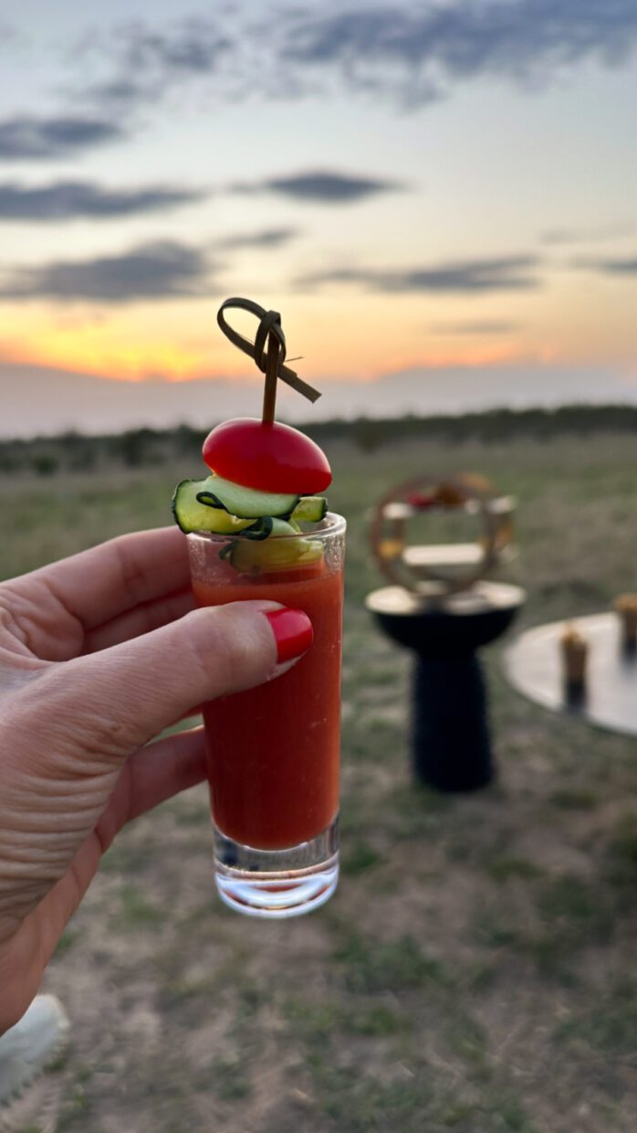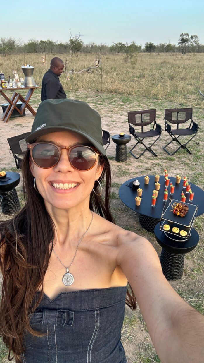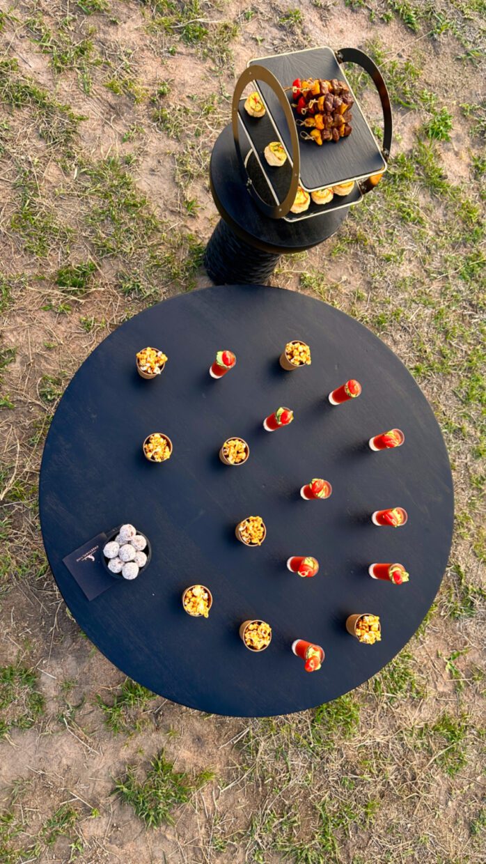 Pôr do sol com petiscos veganos no meio da savana, organizado pelo Cheetah Plains – Andrea Miramontes @ladobviagem