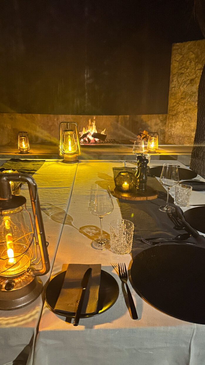Matiska harmoniza jantar dentro da adega de uma das vilas do lodge – foto Garrick / Cheetah Plains