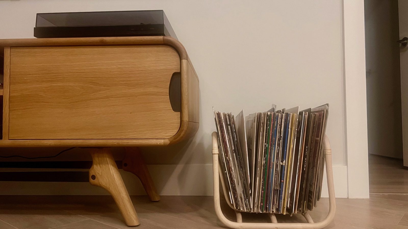 Era o apartamento de um casal jovem, todo moderno, exatamente na vibe que eu queria, com as coisas práticas e até um toca disco retrô para vinis. Amei demais.
