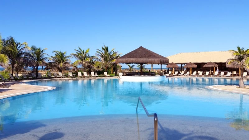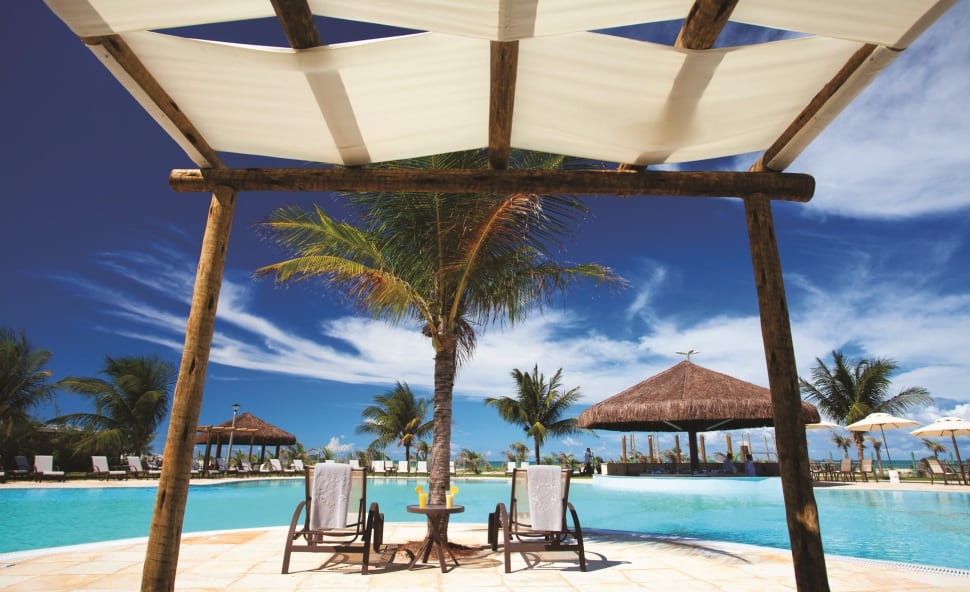 Na praia em em Aquiraz, a poucos minutos de Fortaleza, o resort de luxo Dom Pedro de Laguna tem os quartos em um sistema de “water vilas”.