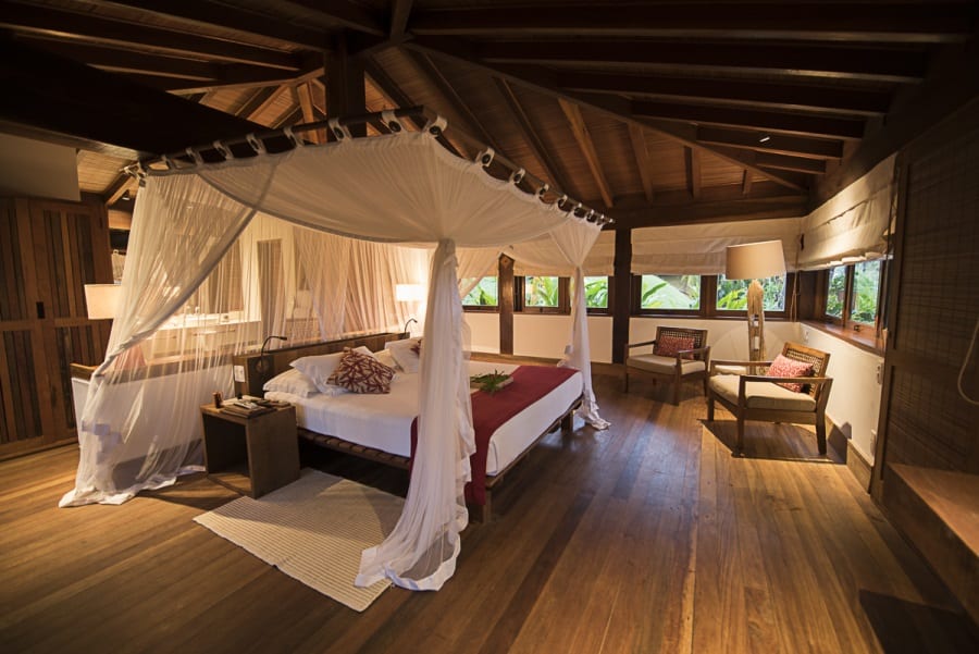 São 38 bangalôs com deck de madeira suspenso que revelam a exclusividade de um resort premiado.