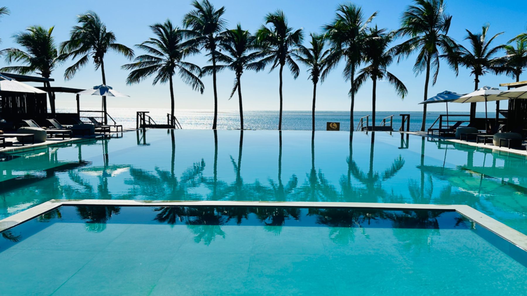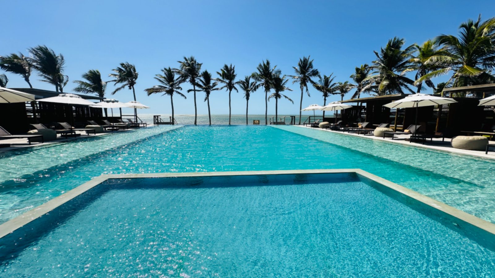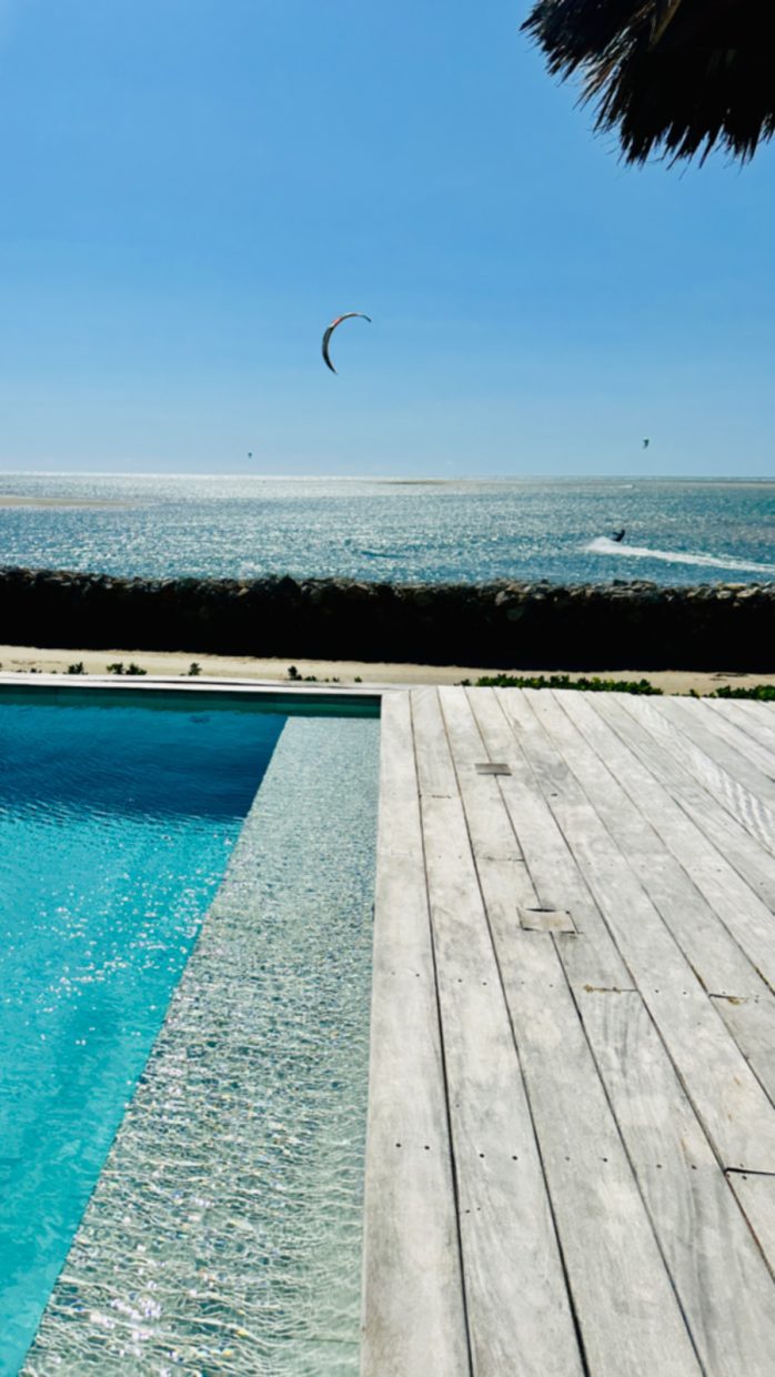 Quem quiser também pode observar os kites da piscina de borda infinita gigante do hotel, com vista para o mar.