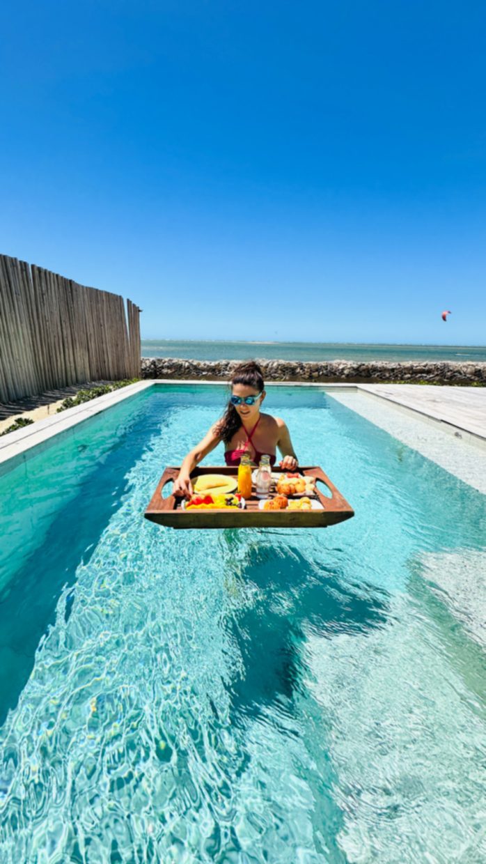 Café flutuante no bangalô do Jaguaríndia Village – foto Andrea Miramontes @ladobviagem