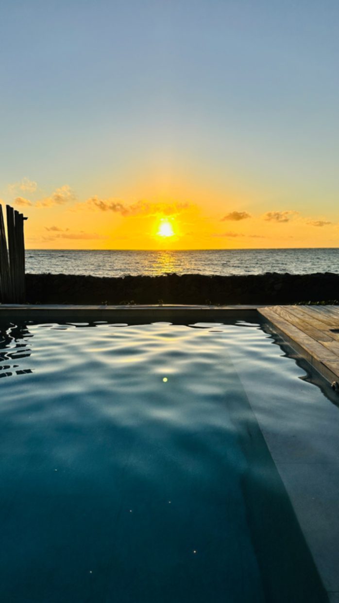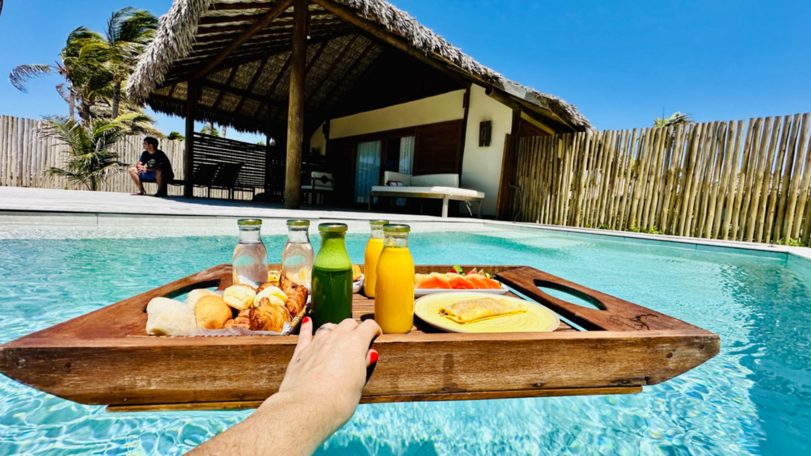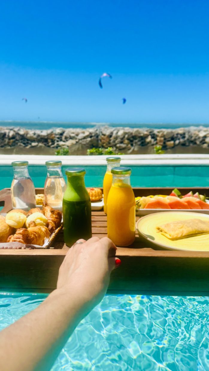 Para o seu café na piscina privativa do bangalô, você escolhe no dia anterior que a bandeja estará pronta, flutuando, no horário escolhido.