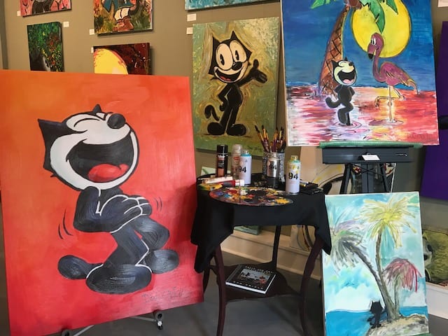 É lá que está a galeria do dono do Gato Felix, por exemplo. A Zazoo Fine Art Gallery, de Don Oriolo, artista e filho do criador do personagem.