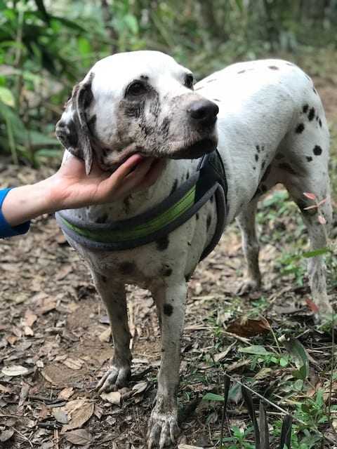 Maga, minha dálmata gordela e senhorinha, teve que ser carregada para atravessar um trecho alto de pedras, pois não podia pular.