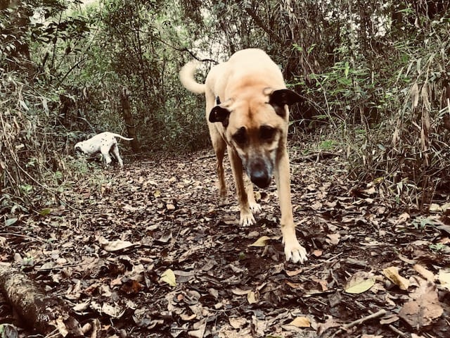 Cães são muito bem-vindos. Inclusive, tem um cão adotado pela turma do Mundaka que acompanha a trilha.
