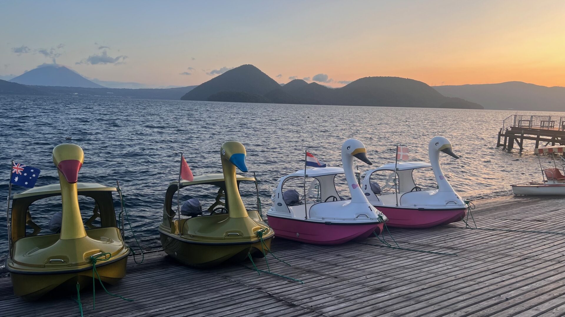 Fiquei hospedada à beira do Lake Toya, que dá o nome à cidade é, na verdade, um caldeirão vulcânico. Também foi resultado de outra explosão do Mt Usu, há 110 mil anos.