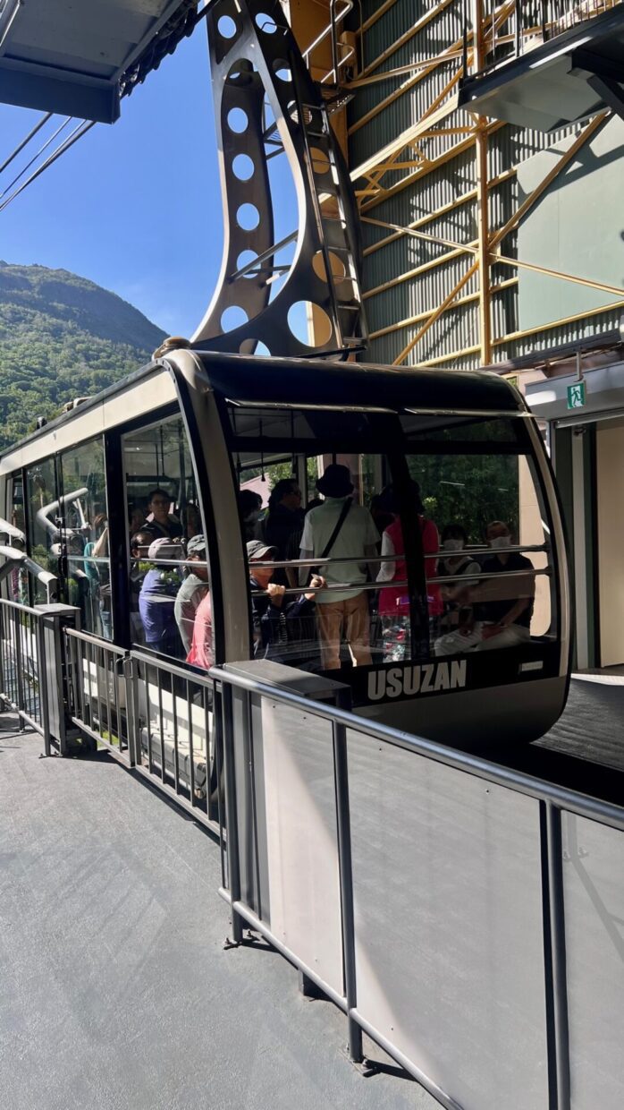 Usuzan Ropeway é um bondinho (cable car) que transporta o turista até chegar quase ao topo do vulcão, a 540 m.